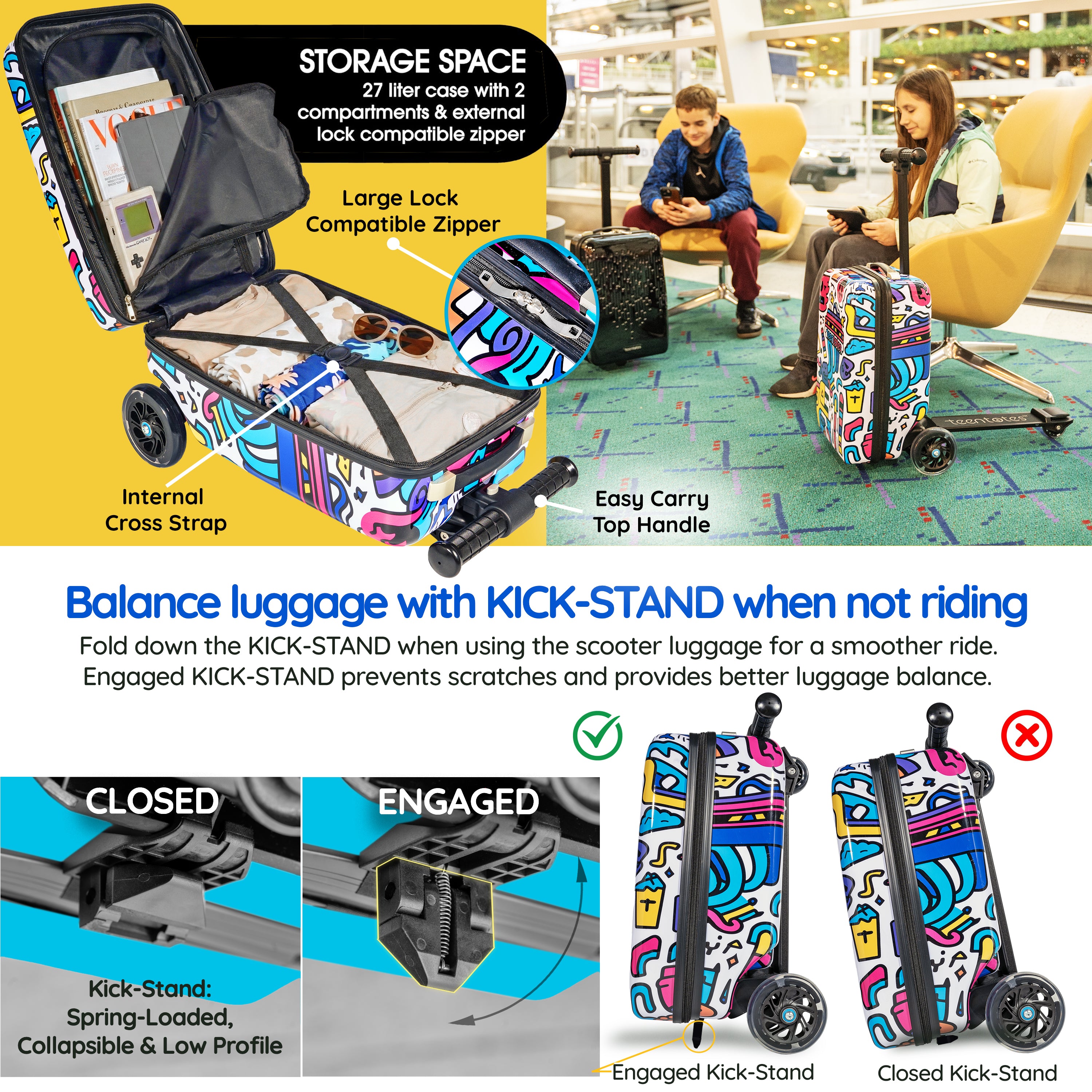 • DETACHABLE SCOOTER DESIGN – Use as a ride-on suitcase or a freestanding scooter for everyday play. The removable luggage body gives kids two fun options: travel or scoot.